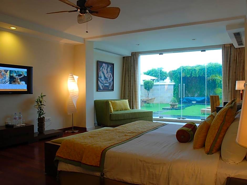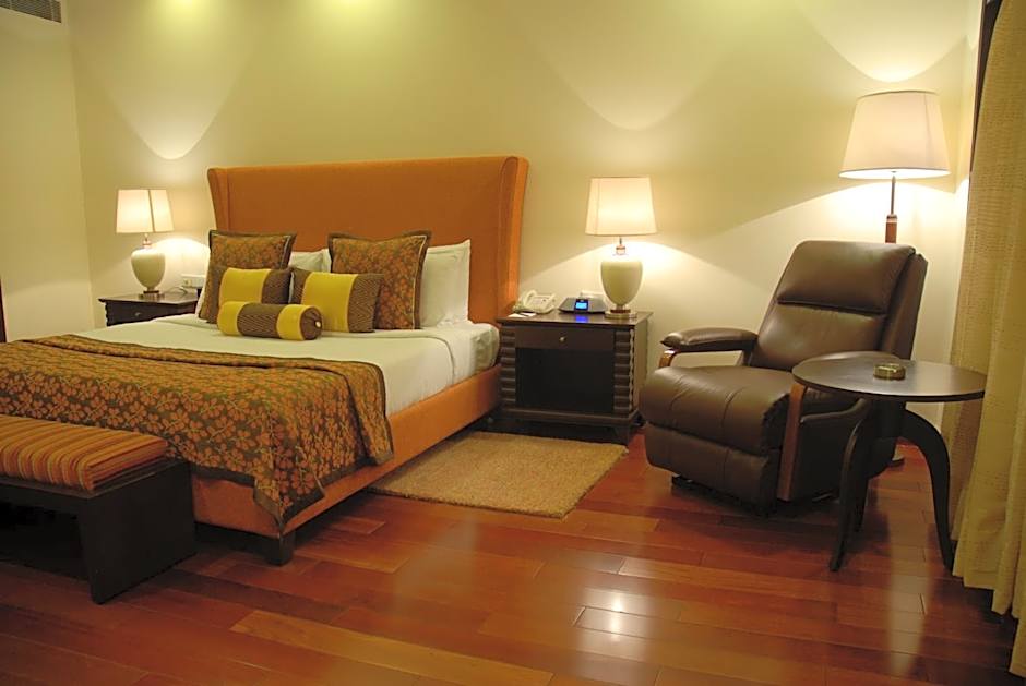 Room overlooks the Khajuraho Temples. It comes fitted with a mini-bar, tea/coffee-making facilities and a DVD player. Also included are an individually controlled air-conditioner, plasma television, attached bathroom with shower cubicle, tea/coffee maker, work desk, telephone, electronic safe, iron and ironing board.